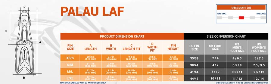 Las patas de rana Palau están diseñadas y fabricadas en Italia por Cressi. Cressi ha sido una marca italiana pionera en equipos de buceo, snorkel y natación desde 1946.